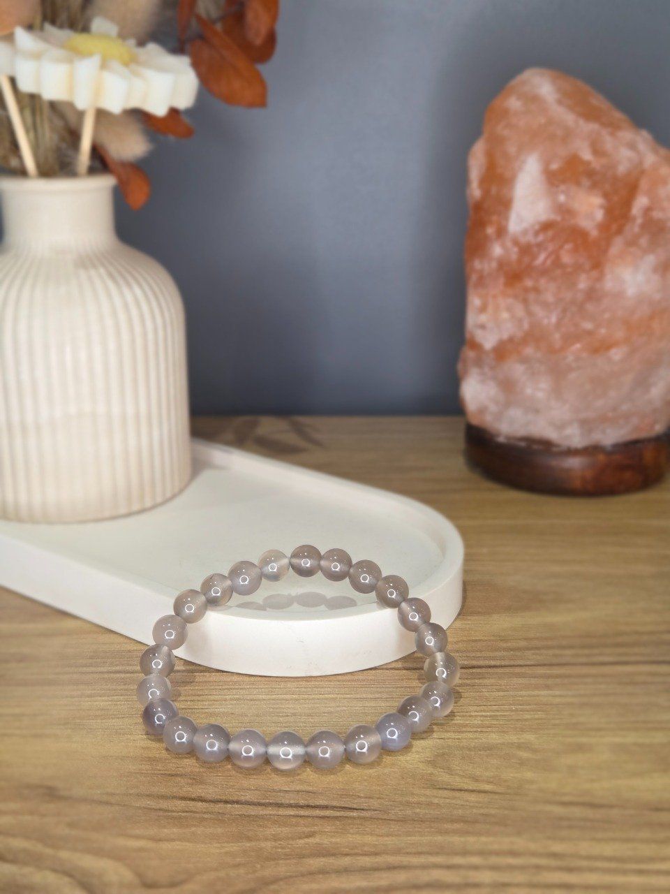Bracelet en Agate grise naturelle, monté à la main sur fil élastique et ajusté à ton poignet. Pierre de calme, d’équilibre et de stabilité émotionnelle. 🌫️